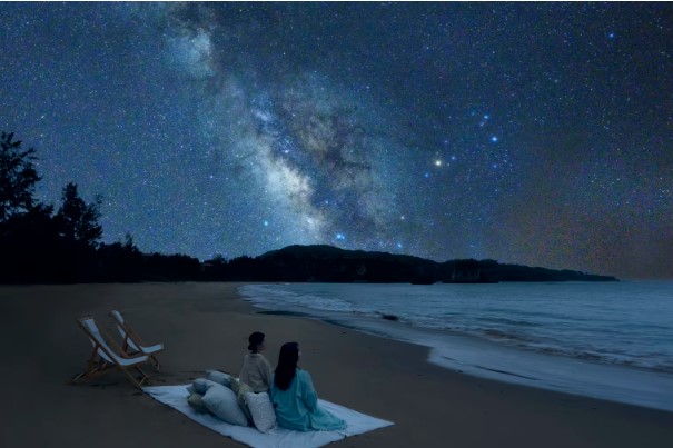 ホテル前のビーチに星空観賞のスポットが期間限定で登場。星空をイメージしたオリジナルドリンクを片手に、満天の星に癒されるひとときをお過ごしください。